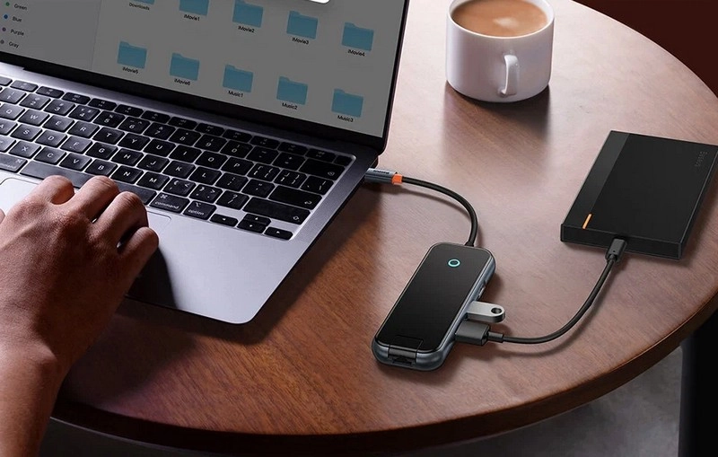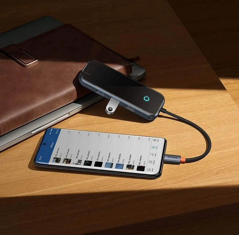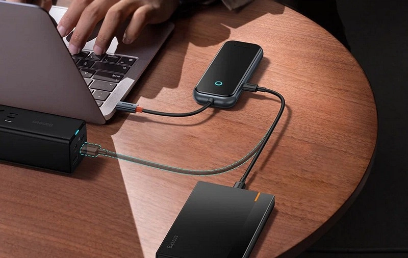 Хаб выполнен из прочных материалов, а закаленное стекло придает ему неповторимый стиль, присущий аксессуарам от Baseus. Для большей устойчивости хаб оснащен силиконовыми ножками. О своем состоянии устройство сигнализирует световой индикацией.