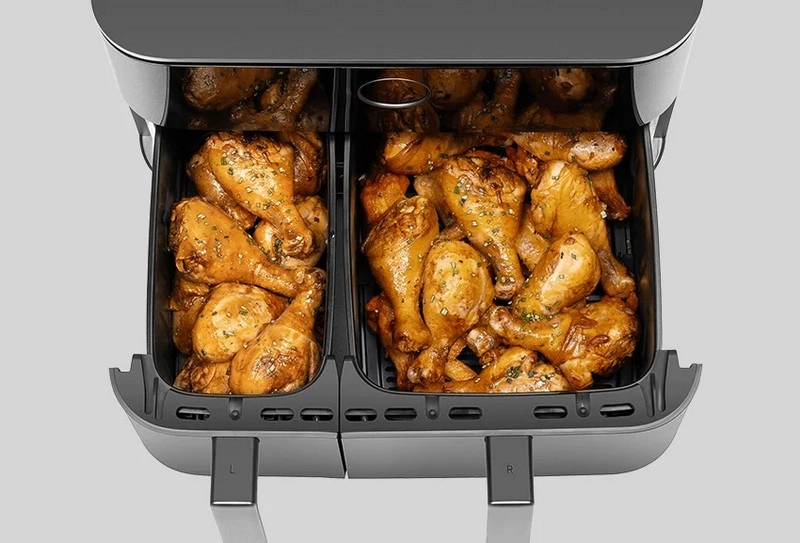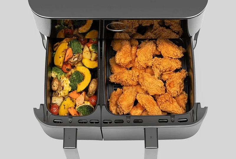 Аэрогриль Xiaomi Dual Zone Air Fryer 10L — позволяет одновременно готовить основное блюдо и гарнир в двух независимых отсеках объёмом 3,5 л и 6,5 л. Интеллектуальная система автоматически синхронизирует завершение приготовления, а технология равномерной циркуляции воздуха сокращает количество масла до 88%. Прочный металлический корпус защищён от перегрева, а встроенный доступ к более чем 100 рецептам открывает широкие возможности для кулинарных экспериментов.