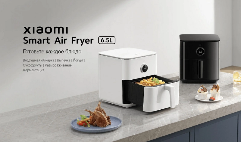 Xiaomi Smart Air Fryer 6.5L выпускается в двух цветах — черном и белом, можно выбрать модель, которая идеально впишется в интерьер вашей кухни.