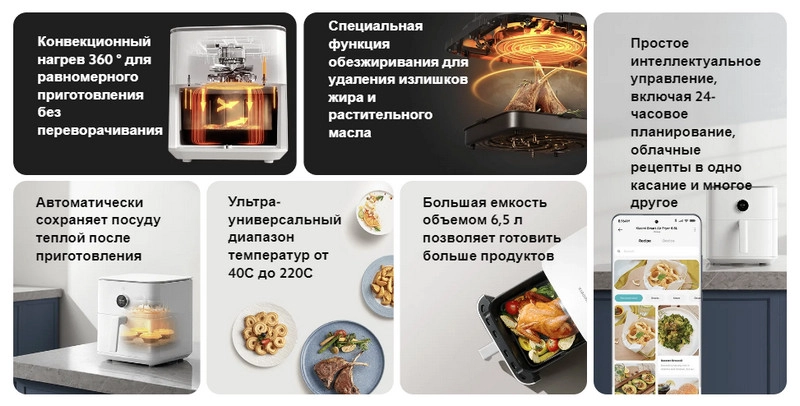 Купить Аэрогриль Xiaomi Smart Air Fryer 6.5L в Москве: цена, характеристики, обзор, фото