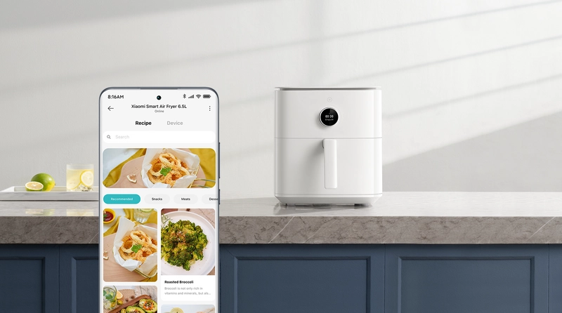 Аэрогриль поддерживает управление через приложение Mi Home, где доступно свыше 100 эксклюзивных рецептов.