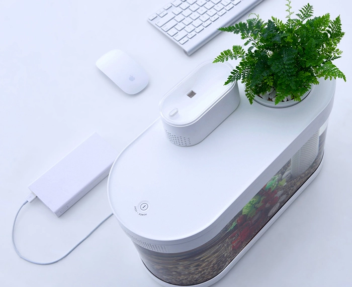 Умный аквариум питается от любого источника с напряжением 5 Вольт с подключением по USB. Такое напряжение полностью безопасно для человека и рыбок, а в случае необходимости аквариум можно запитать даже от внешнего аккумулятора.