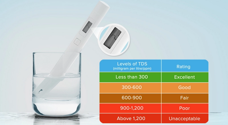 Устройство фиксирует содержание растворённых веществ в диапазоне 0–9990 ppm, включая соли жёсткости, органические примеси и ионы металлов. Это помогает быстро определить, подходит ли вода для питья, приготовления еды или использования в аквариуме.