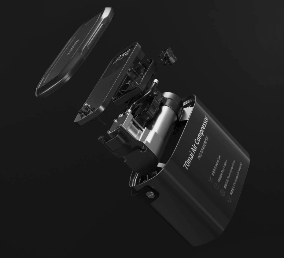 Автомобильный компрессор 70mai Air Compressor Midrive TP01 – устройство с цилиндрами изготовленными из анодированного алюминия, а также немецким поршнем, который способен поднять давление до 7 атмосфер.