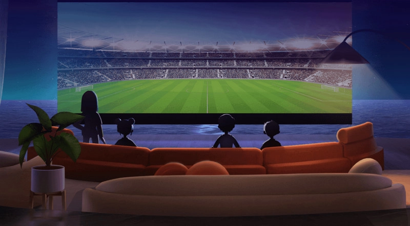 Сочетает в себе 4К-проектор и небольшой саундбар.