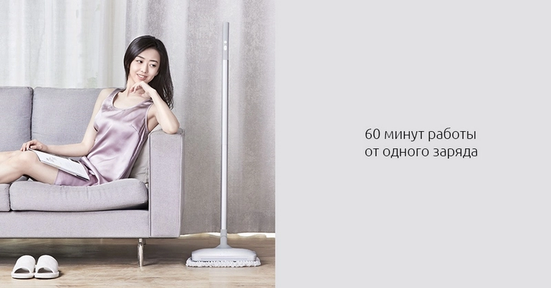 На одном заряде благодаря встроенному аккумулятору мощностью 2000 мАч. Швабра моет пол очень быстро, а значит этого времени вам хватит на уборку большого дома.