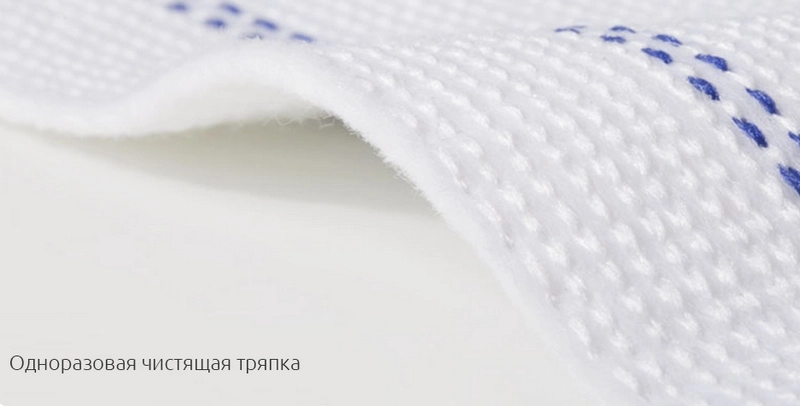 В комплекте со шваброй поставляются салфетки двух видов: одноразовая и многоразовая. Одноразовую тряпку можно выкинуть после использования, а многоразовую промыть и использовать снова. Тряпки крепятся к швабре на липучке.