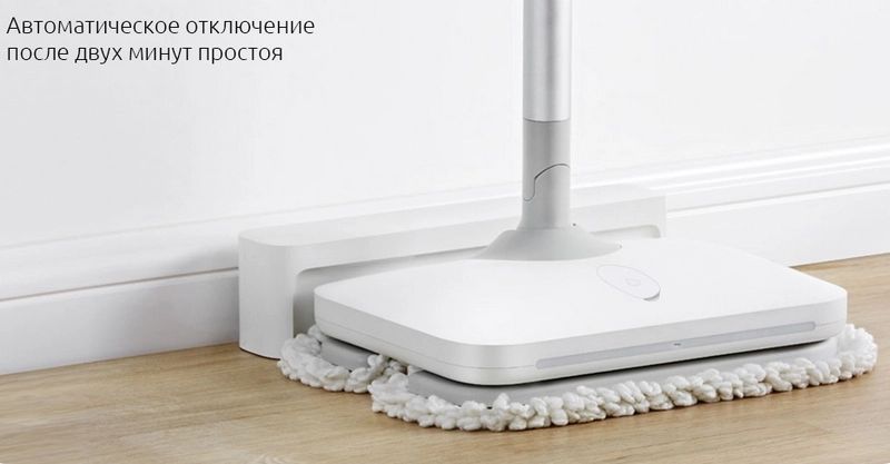 Подзаряжается швабра на небольшой напольной док-станции, магнитная зарядка быстро подзарядит встроенный аккумулятор. Для сохранения энергии швабра автоматически отключается после 2 минут бездействия.