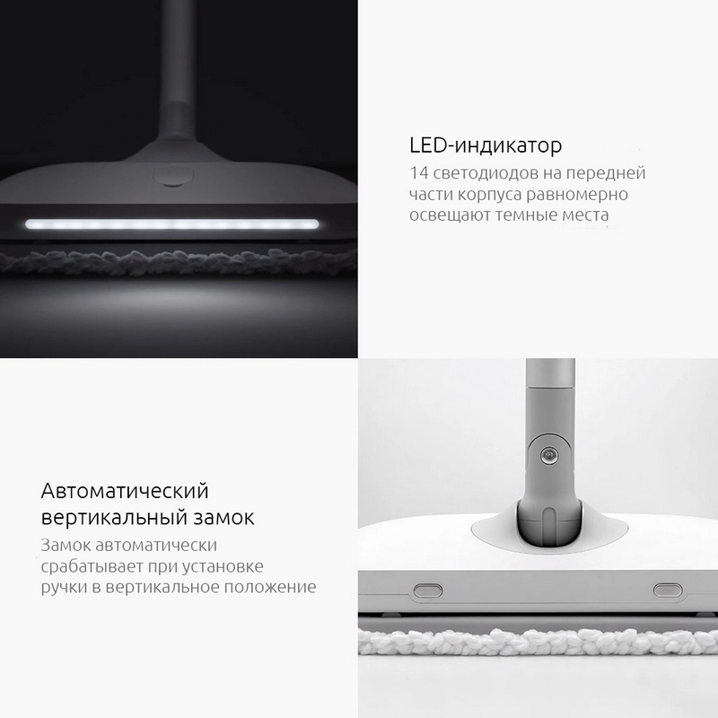 | Размеры | Электрошвабра: 296 х 220 х 1114 мм; Зарядная База: 310 х 65 х 75 мм | |