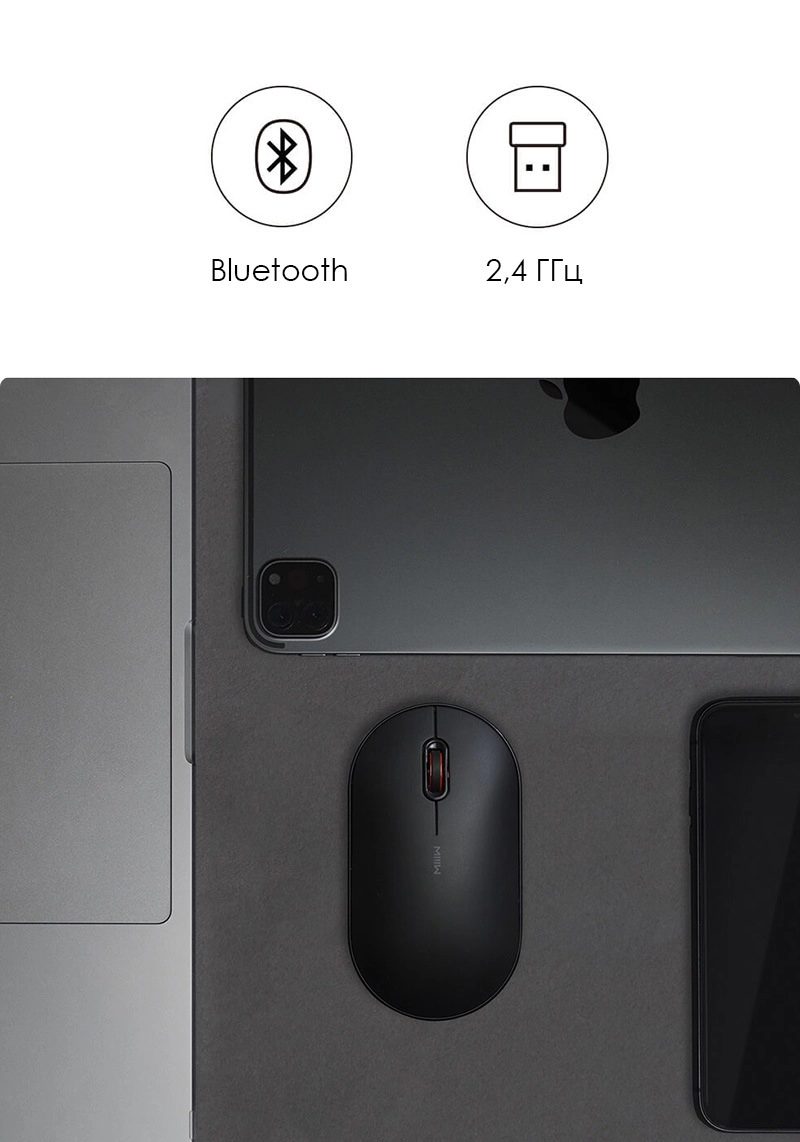 | Тип подключения | Радиоканал 2.4 GHz, Bluetooth | |