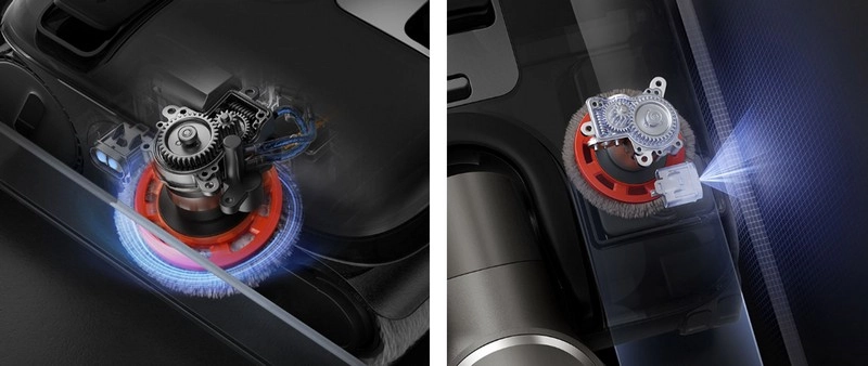 Мощность всасывания 23 000 Па эффективно справляется с пылью, шерстью и влажными загрязнениями. Устройство одинаково быстро убирает мусор на разных покрытиях. Высокая сила тяги достигается благодаря производительному бесщёточному мотору.