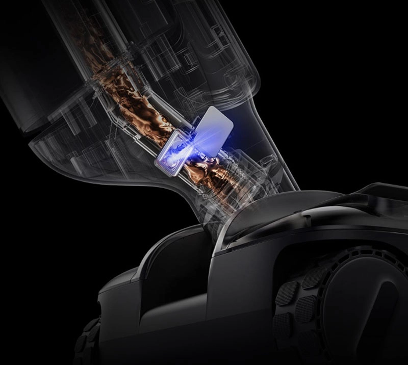 Встроенный датчик анализирует уровень загрязнения и сам выбирает оптимальный режим. Система переключается от щадящего до максимального всасывания. Такой подход повышает эффективность и экономит заряд.