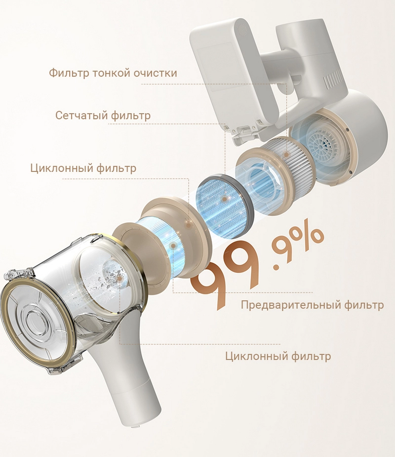 Фильтры Dreame R10 задерживает 99,9% всех загрязнений, надежно запирая всю пыль внутри.
