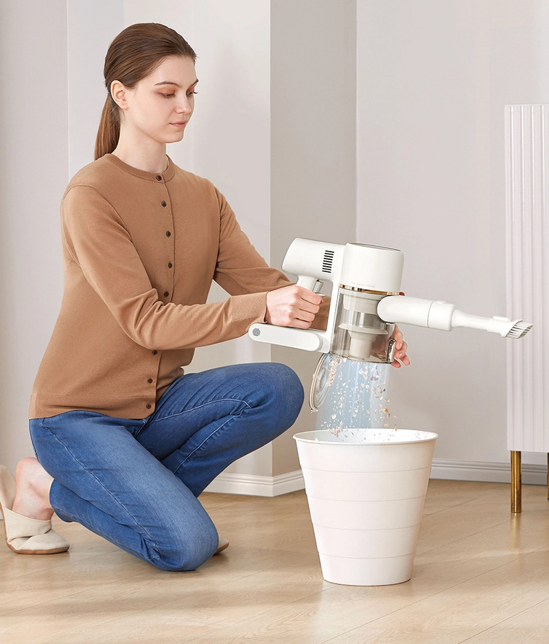 Для очистки пылесборника достаточно нажать на одну кнопку на корпусе и вытряхнуть мусор в ведро.