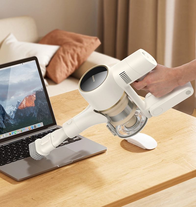 Беспроводной пылесос Dreame R10 Gold — это большая мощность всасывания, встроенная подсветка щетки для уборки, все необходимые насадки для уборки в комплекте. Встроенная расческа предотвращает наматывание волос на валик щетки, а пятиступенчатый фильтр надежно удерживает внутри все загрязнения.