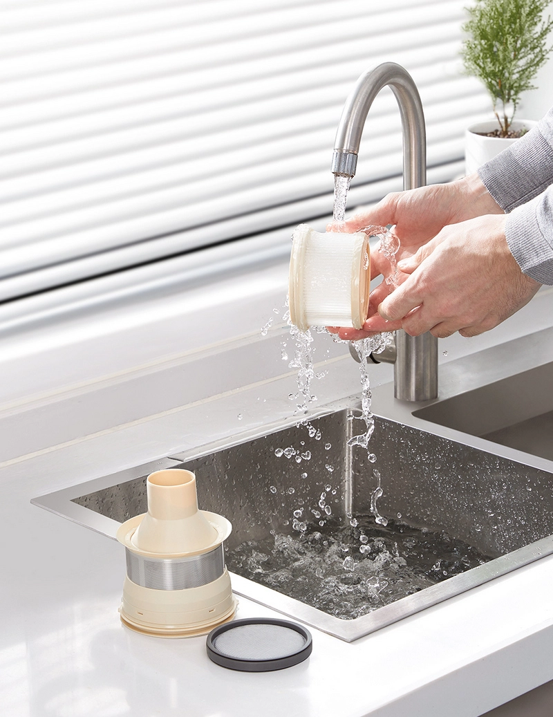 Контейнер для мусора и фильтр можно мыть под проточной водой.