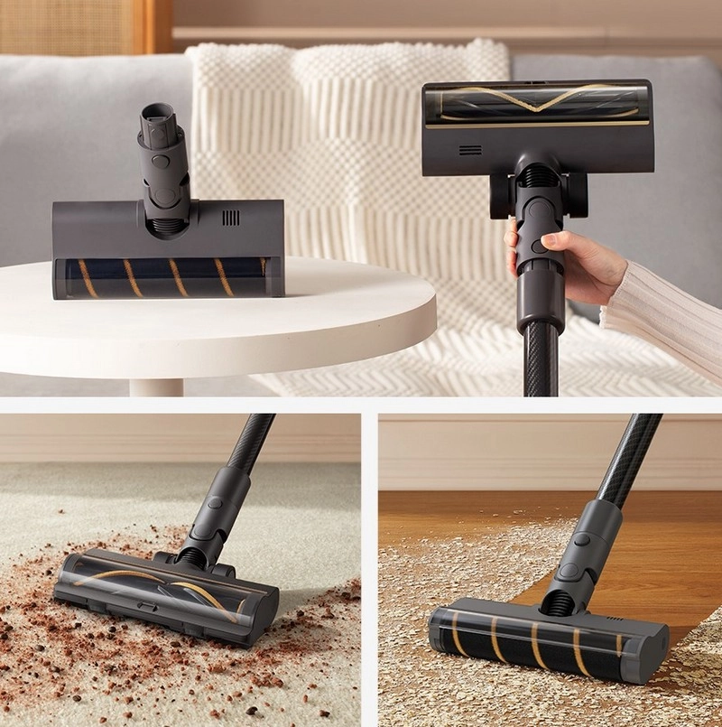 Вместе с Dreame R20 поставляется две щетки: многофункциональная щетка для уборки всех типов напольных покрытий и мягкая роликовая щетка для эффективной уборки гладкого пола.
