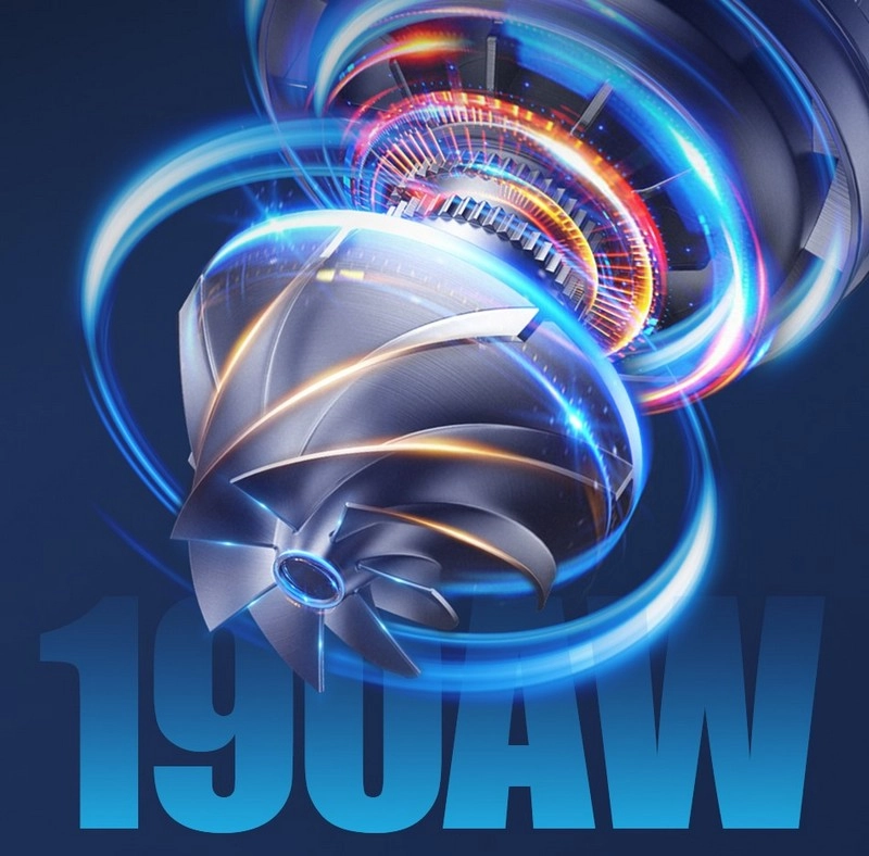 Мощный бесщеточный двигатель вращается со скоростью 150 000 оборотов в минуту, он формирует воздушный поток, который собирает мусор с революционной мощностью 190 аэроватт.