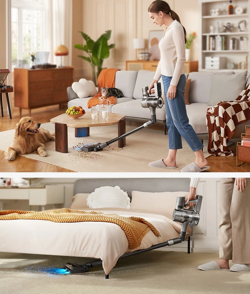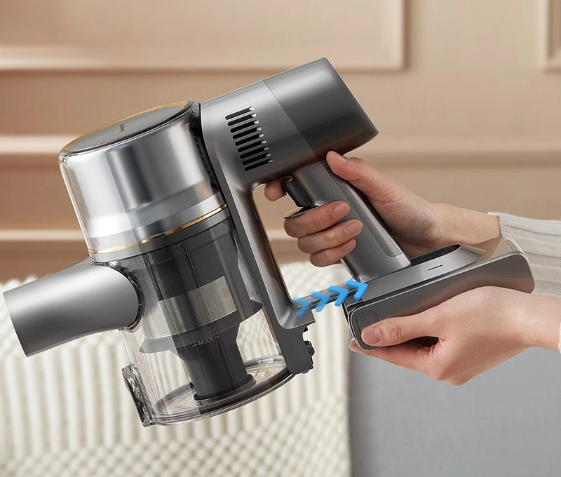 Беспроводной пылесос Dreame R20 — это невероятная мощность 190 аВт с автоматической регулировкой всасывания, синяя подсветка основной щетки, 90 минут автономной работы, съемный аккумулятор и большой набор аксессуаров в комплекте.