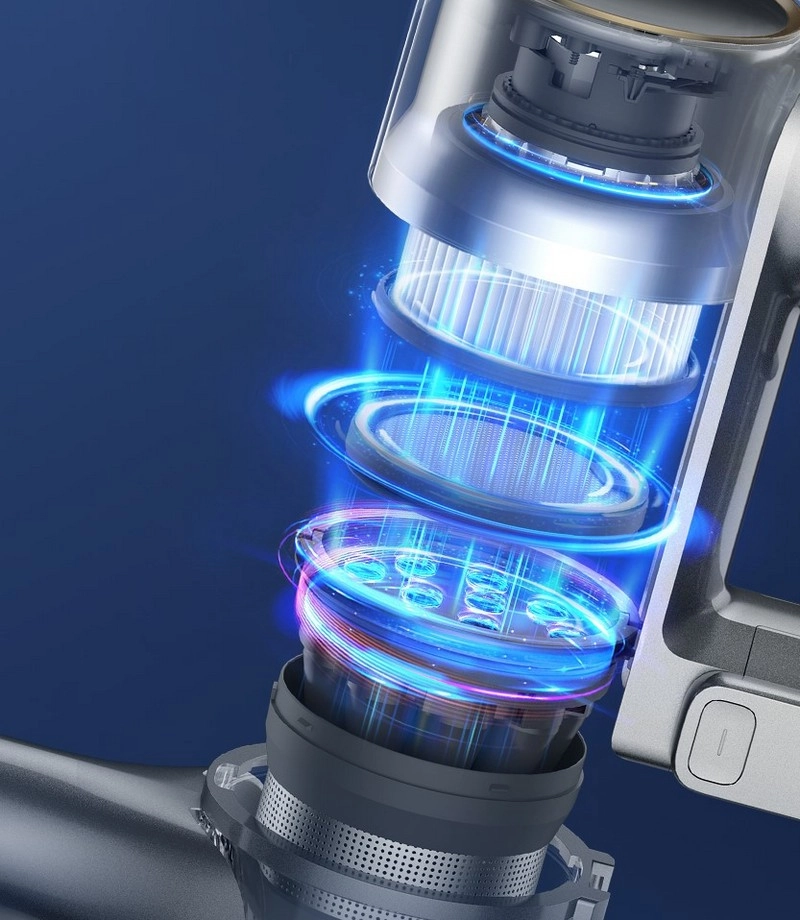 Многоуровневый фильтр задерживает до 99,99% всех загрязнений, которые попадают в пылесборник Dreame R20.