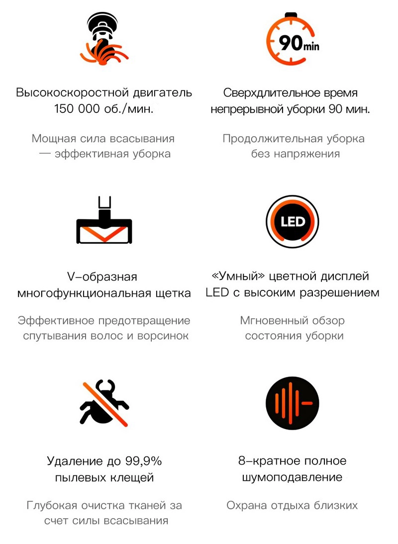 | Особенности | Бесщеточный двигатель Space 5.0, HEPA-фильтр и многоуровневая система очистки | |