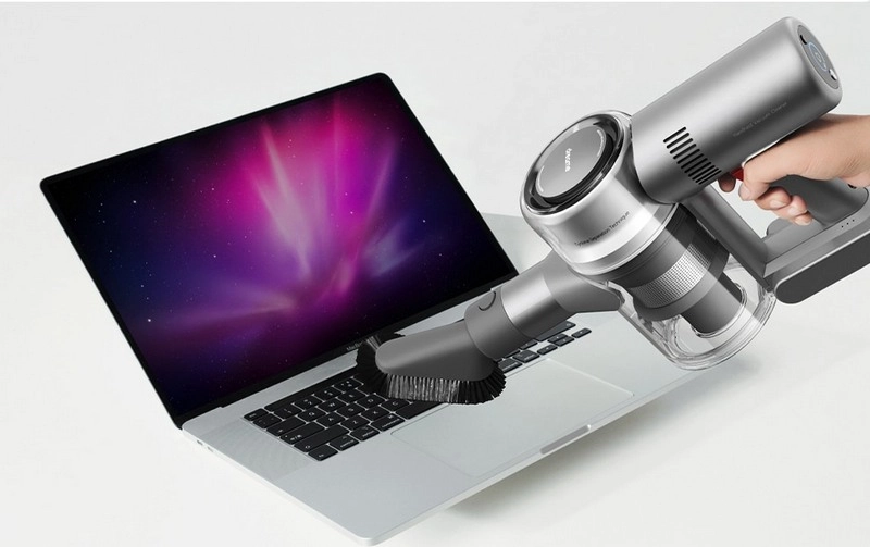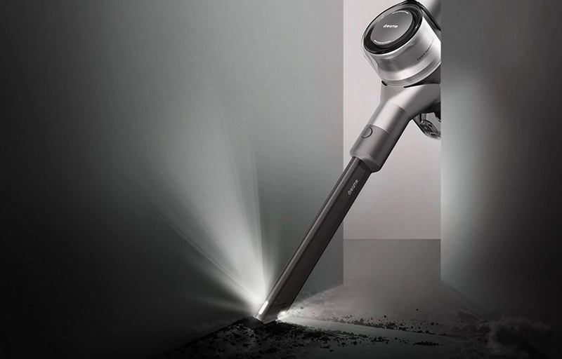 Впервые в линейке ручных пылесосов Dreame был внедрен ряд интересных решений, значительно облегчающих процесс уборки. Щелевая насадка получила подсветку для эффективной очистки в темных углах. В комплектацию добавили переходник, который может сгибаться — это значительно облегчает уборку под мебелью.
