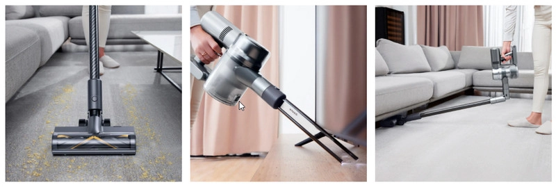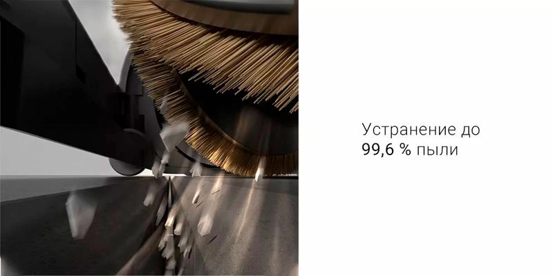 Пылесос эффективно справляется с пылью в коврах и щелях напольных покрытий и удаляет 99,6% пылевых частиц.