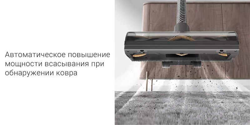 Пылесос анализирует сопротивление при всасывании мусора и автоматически повышает мощность при уборке ковровых покрытий. В сочетании с рекордной мощностью всасывания это обеспечивает превосходный результат уборки с минимальными усилиями.