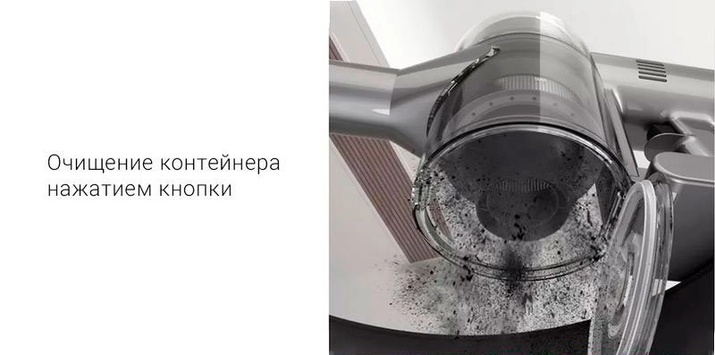 Для того чтобы освободить контейнер от мусора достаточно нажать всего одну кнопку на корпусе пылесоса.