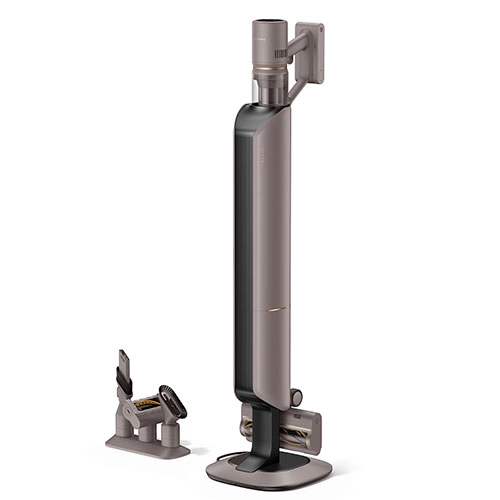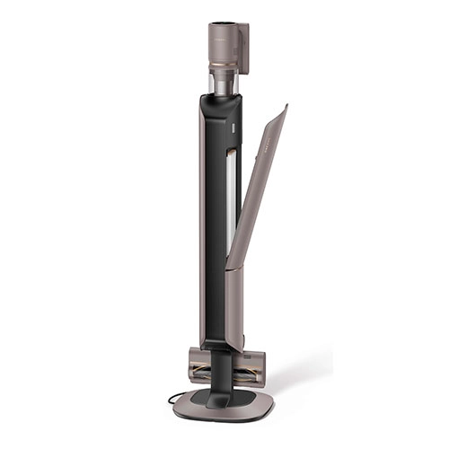 Док-станция с контейнером для пыли одновременно очищает пылесос, заряжает его и служит местом для хранения насадок.
