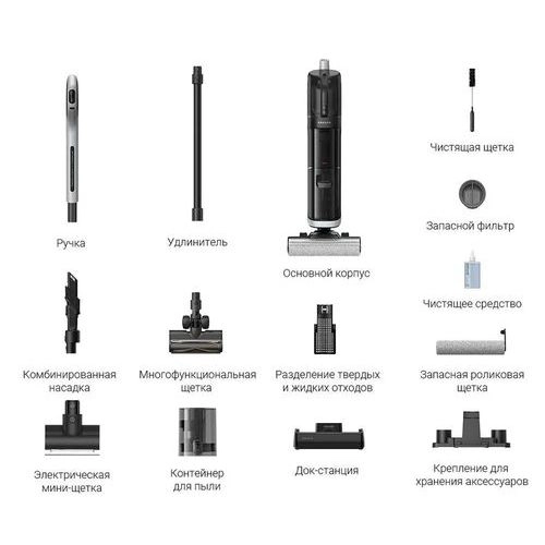 Беспроводной ручной пылесос Dreame H14 Dual Black — с функциями сухой и влажной уборки станет вашим лучшим помощником в ежедневной или генеральной уборке. Одновременная сухая и влажная уборка экономит время и позволяет собирать пролитые жидкости, соусы и каши с пола, а сменная насадка для сухой уборки справится с коврами и мебелью.