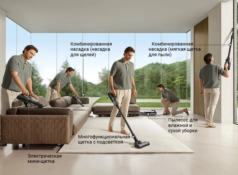 Благодаря большому количеству сменных щеток и аксессуаров с помощью одного пылесоса можно выполнить все задачи по домашней уборке.