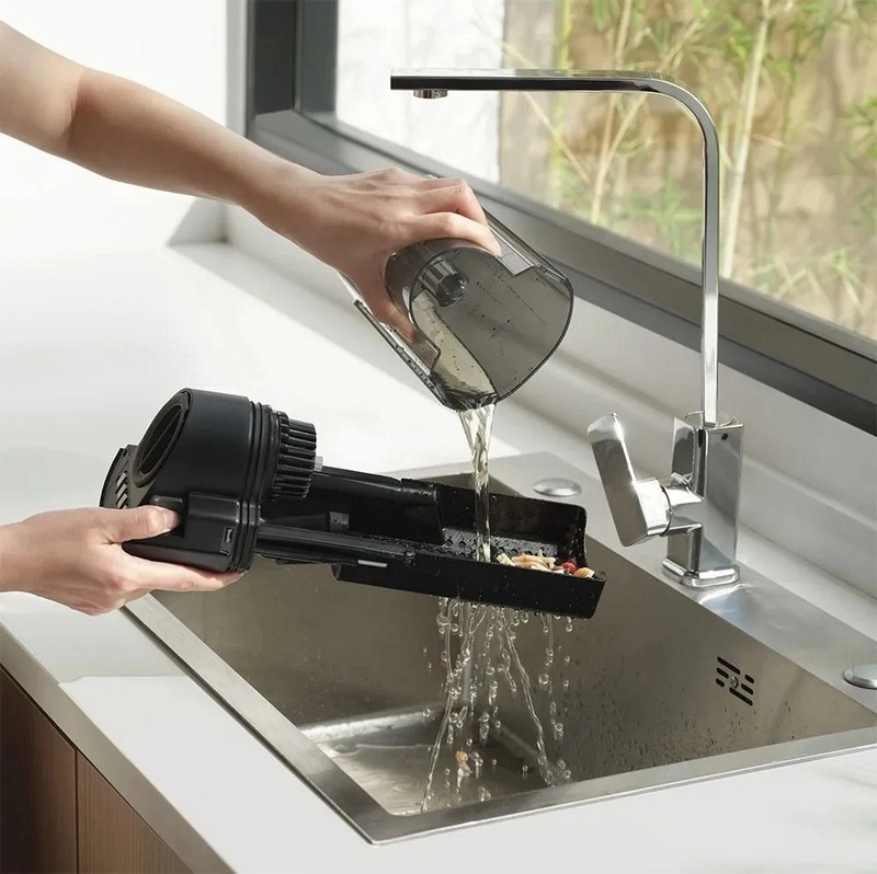 Контейнер пылесоса разделяет жидкие и твердые отходы, упрощая очистку после уборки.