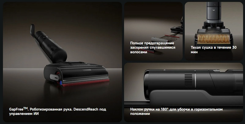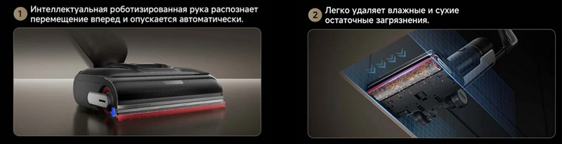 Благодаря роботизированной руке Dreame H15S устраняет пыль и мусор без пропусков даже в самых труднодоступных местах. Технология эффективно очищает вдоль стен и из-под мебели, где обычно скапливается скрытая грязь.