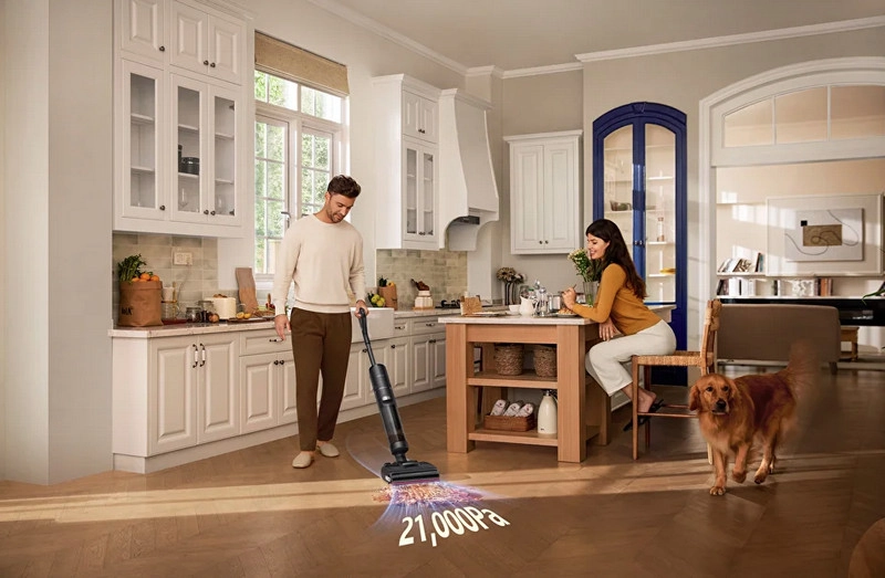 Мощное разрежение до 21 000 Па втягивает как сухой мусор, так и жидкие следы. Пылесос эффективно очищает стыки и щели пола с первого прохода, сокращая время уборки и устраняя необходимость в повторной обработке.