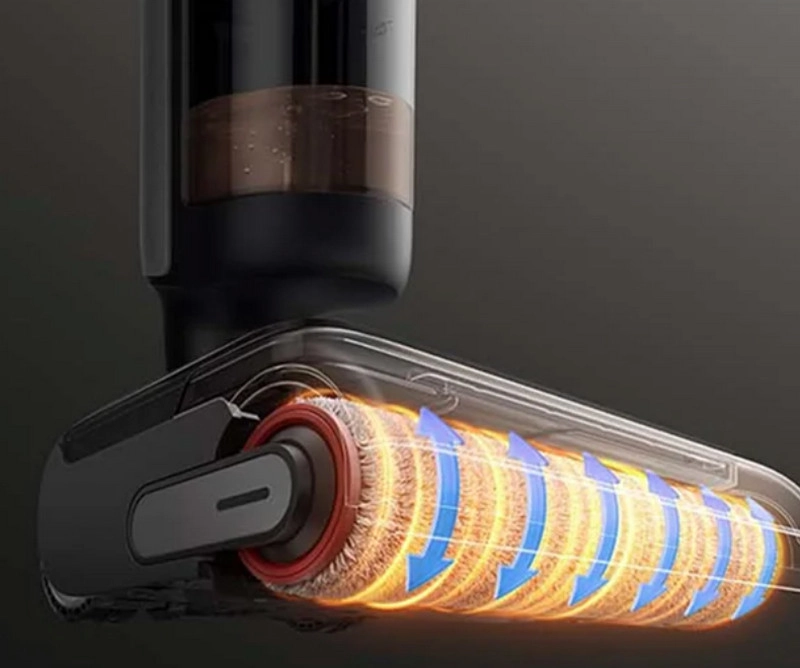 RGB-датчик определяет уровень загрязнения и автоматически меняет мощность всасывания. В процессе самоочистки валик двигается вперёд и назад, имитируя ручное трение, а цикл завершается сушкой и промывкой крышки.