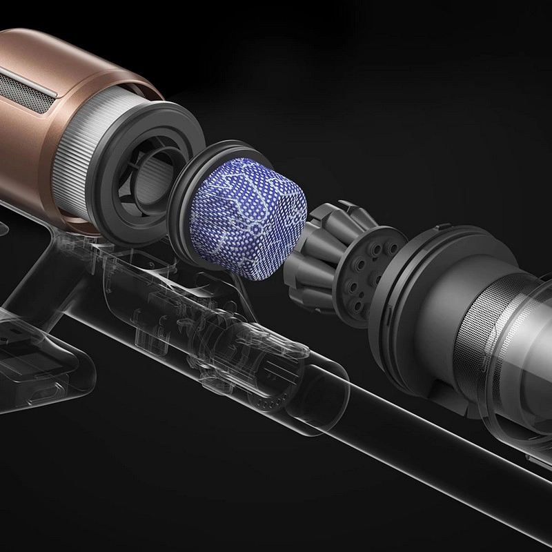 В Dreame Z20 установлен фильтр HEPA 14, который задерживает 99,99% частиц размером от 0,3 мкм. Также он уничтожает вирусы и бактерии.