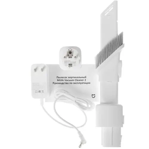 Комплектация Адаптер питания , Документация , Насадка для пола , Насадка против клещевой пыли , Подставка для зарядки , Пылесос