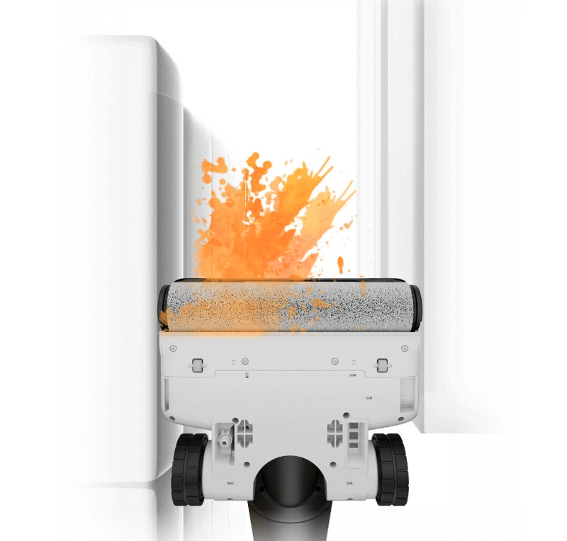 В процессе уборки ролик пылесоса автоматически очищается с помощью встроенного скребка и постоянного притока чистой воды.