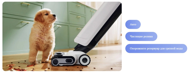 | Особенности | Голосовое оповещение , Подсветка зоны уборки , Режим сушки пола , Самоочистка роликовой щетки , сушка горячим воздухом | |