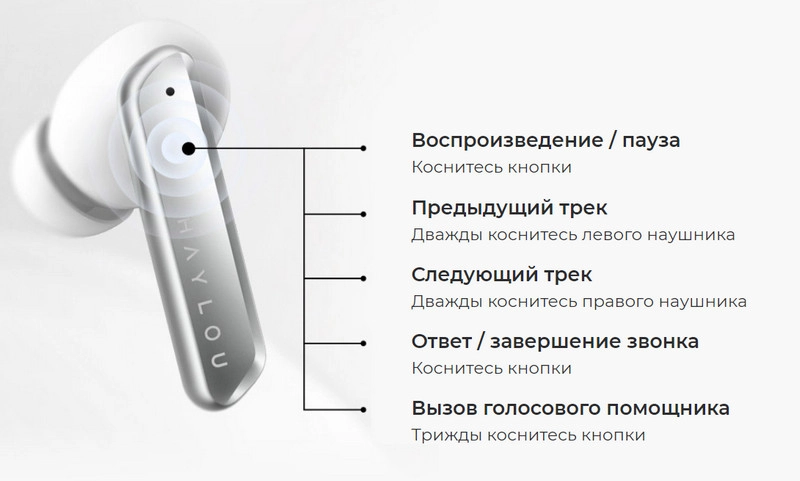 Управляйте наушниками легким движением подушечек пальцев. Переключение между треками, ответ на звонок, вызов голосового помощника и другие команды повинуются легкому движению руки.