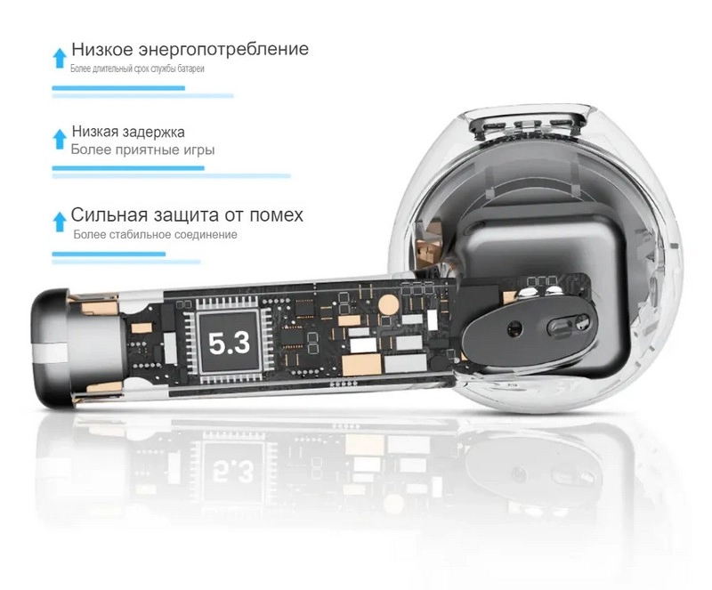 Для подключения к смартфону используется стандарт Bluetooth 5.3, он обеспечивает быструю синхронизацию и минимальную задержку при передаче звука.