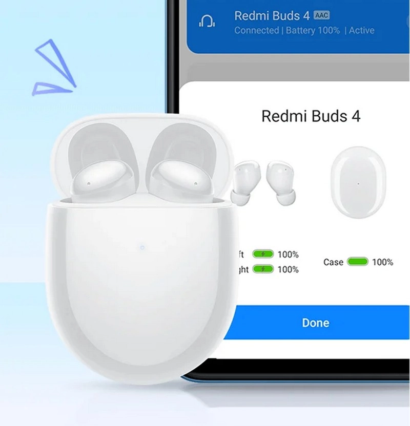Беспроводные наушники Redmi Buds 4 (M2137E1) — с гибридным активным шумоподавлением и двойным режимом прозрачности для того, чтобы наслаждаться любимыми треками и не терять связь с окружающим миром. Работа до 30 часов и технология искусственного интеллекта для фильтрации шума.