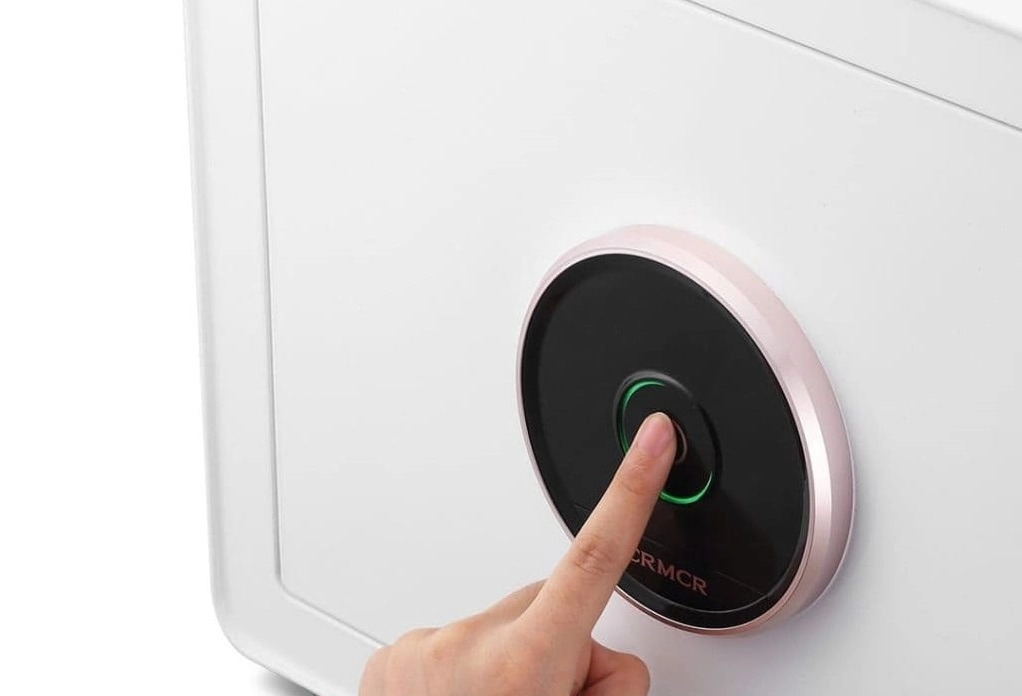 Сейф оснащен трехмерными емкостными датчиками, которые позволяют быстро и точно идентифицировать пользователя. Для этого в самом центре дверцы расположена большая кнопка со встроенным сенсором отпечатка пальца.