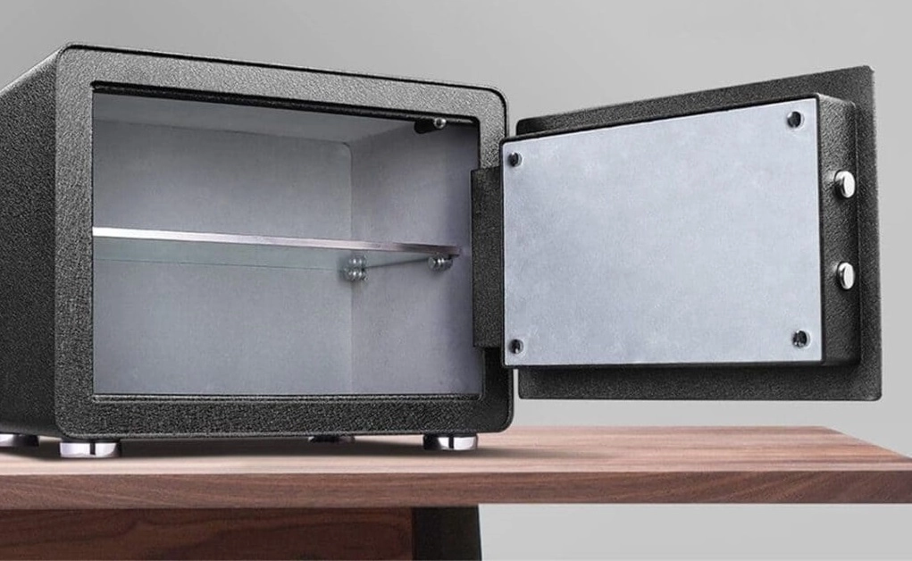 Для дополнительного удобства внутреннее пространство сейфа было поделено на 2 части, а перегородка изготовлена из качественного стекла с допустимой нагрузкой до 30 кг.