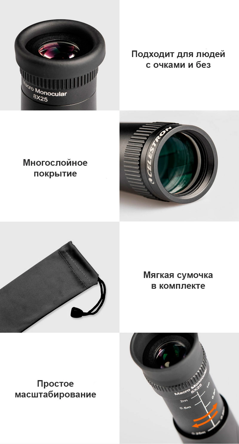 Близкофокусный телескоп Celestron close-focus telescope 0.25M SCJJ-825 — открывает красоту вблизи и головокружительные виды на расстоянии. Ближайший фокус 25 см, цельнометаллический корпус, удобная гравировка.