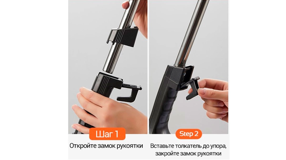 Не у всех пользователей получается с первого раза найти гнездо для подключения рукояти. На рукоятке пылесоса есть г-образный крючок, который нужно отодвинуть в сторону и тогда откроется отверстие для соединения с ручкой.
