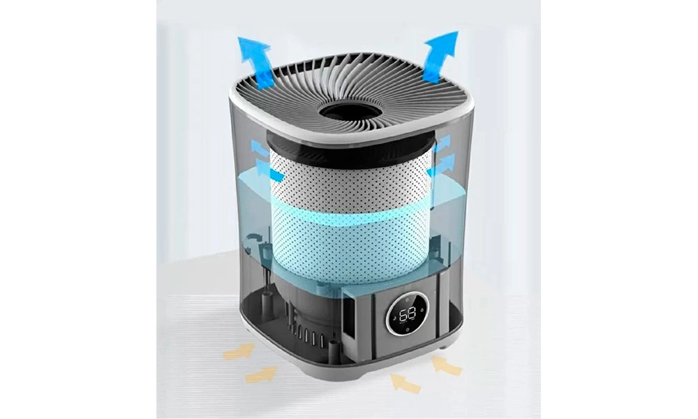 Увлажнитель воздуха естественного испарения представляет собой контейнер с водой и картриджами, которые обдувает вентилятор, создавая натуральный влажный ветер. Примером такого устройства является увлажнитель воздуха Xiaomi Beautitec Evaporative Humidifier.