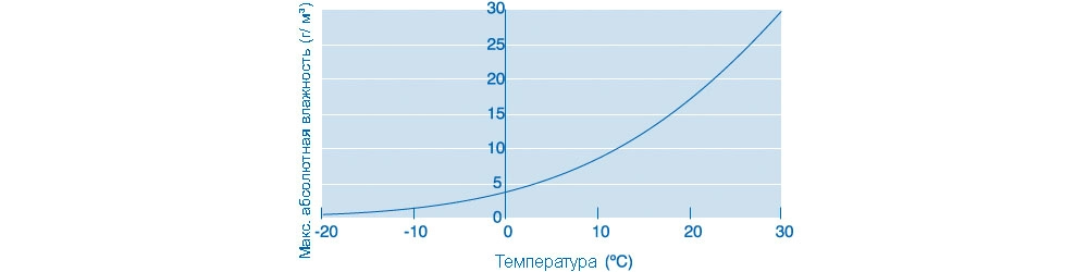За снижение влажности воздуха отвечает похолодание. Чем теплее воздух, тем большее количество влаги он может удерживать. Но как только температура воздуха начинает стремиться к нулю, он становится все суше и суше. При температуре воздуха 30°C в воздухе содержится 30 грамм водяного пара на 1 кубический метр воздуха. При 0°C уже менее 5 грамм, а при -20°C влаги в воздухе не остается совсем.