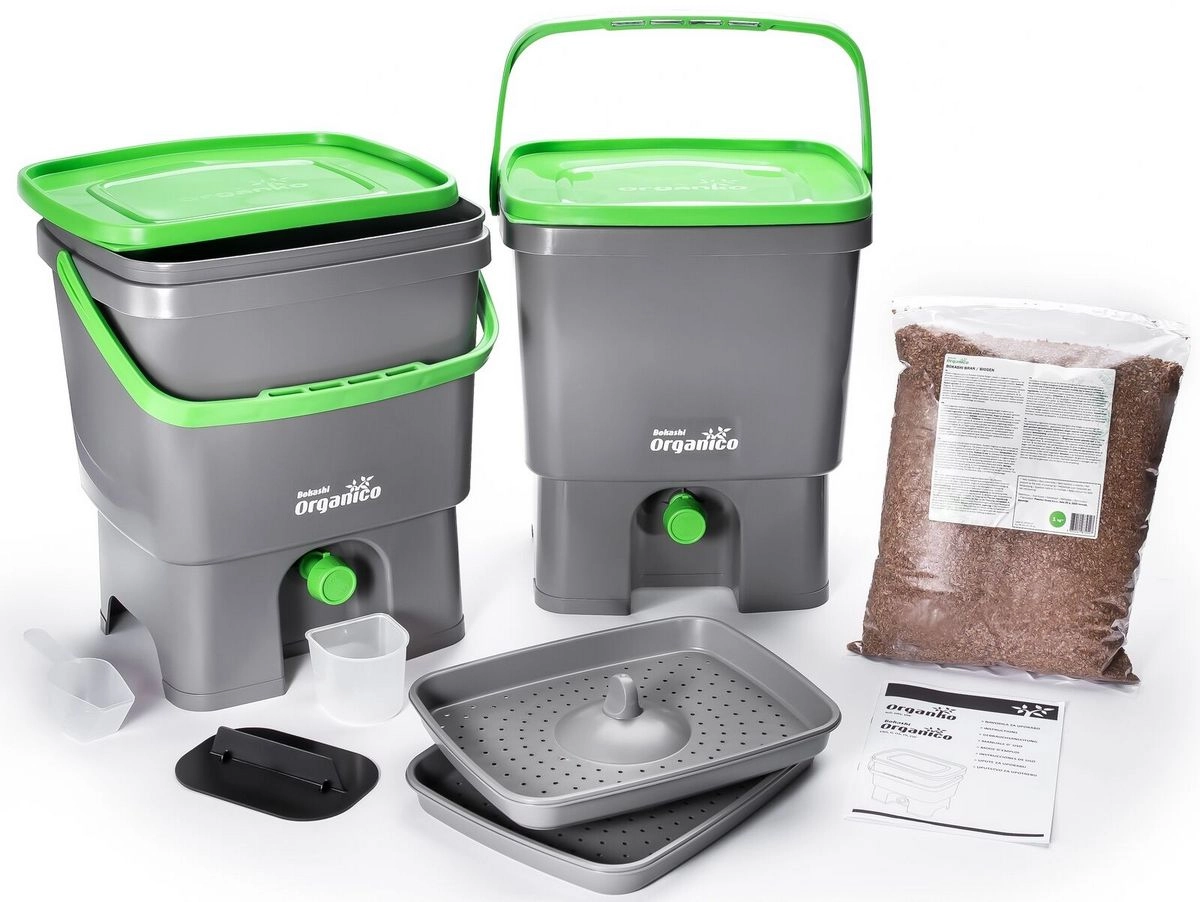Более простая установка, которая представляет из себя ведро с герметичной крышкой и краником. Для эффективного превращения пищевых отходов в полноценное удобрения понадобится добавить к отходам специальные микроорганизмы, которые и займутся их переработкой. Герметичная крышка не позволит запаху просочиться в дом, а краник в нижней части бака позволяет сливать лишнюю жидкость.